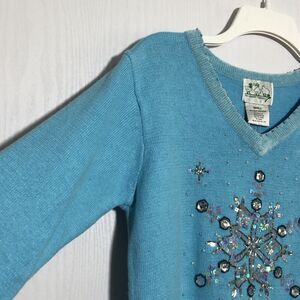 Quacker Factory Sweater Womens Small Blue Snowflake Christmas Granny Sparkle New