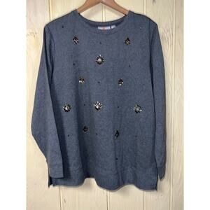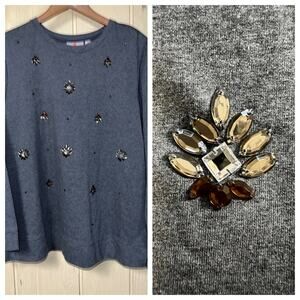 Quacker Factory Sweatshirt Top Womens Large Rhinestones Embellished Gems New QVC
