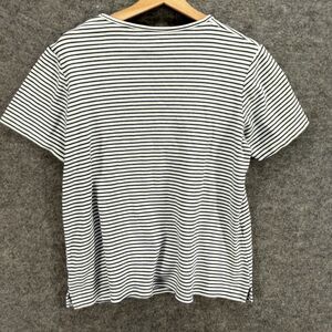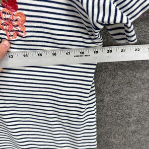 Quacker Factory T-Shirt Women M Medium White Striped Embroidered Short Sleeve