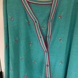 Stylish teal sweater with pink accents. Features a V-neck and button closure. Perfect for casual wear. Two pieces 💗🩵💗