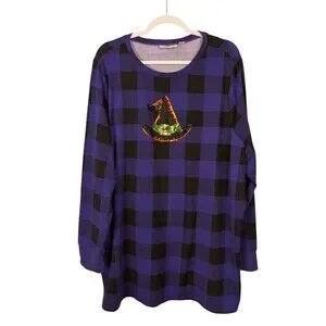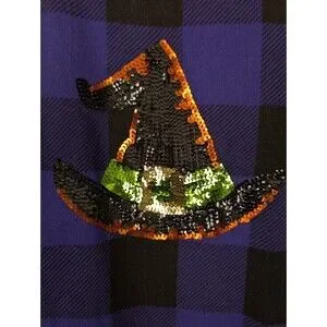 Purple Buffalo Plaid Sequin Witch Hat Halloween Theme