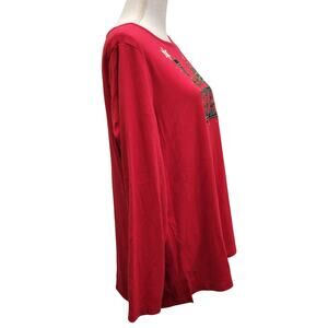 Quacker Factory Top Women's 1X Red Christmas Holiday LOVE Shirt Embellished