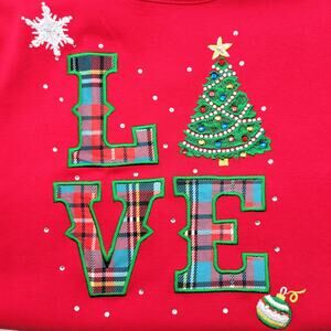 This Quacker Factory Christmas LOVE Embellished Top has Some Fading of Color but has No other Obvious Rips, Stains or Defects - Good Pre-Owned Condition! If you're unsure about anything, please reach out with any questions before purchasing!