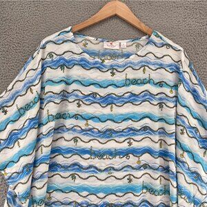 Quacker Factory Top Womens Extra Large Blue Ocean Charm Bracelet Shawl Blouse