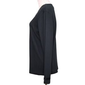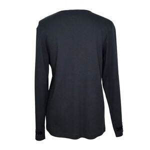 Quacker Factory Top Women's Small Black Sequin Trimmed T-shirt Tee Keyhole front