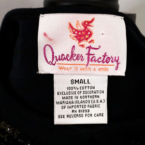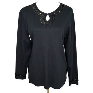 Quacker Factory Top Womens Small Black Sequin Trimmed T-shirt Tee Keyhole front
