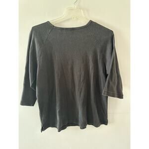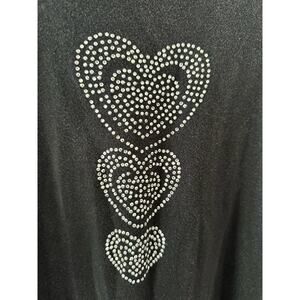 Quacker Factory Top Women's XL Black Rhinestone Hearts 3/4 Sleeves Crewneck