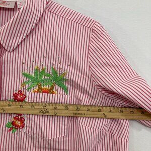 Quacker Factory Top sz 1X Pink White Striped Embroidered Short Sleeve Button Up