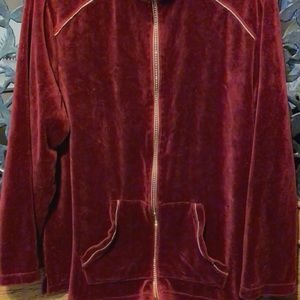 Quacker Factory Rhinestone & Gold Trim Velour Track Jacket. Size Large.