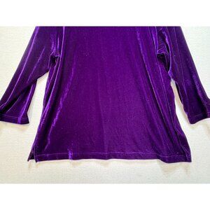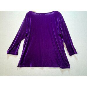 Quacker Factory Velvet Blouse Womens XL Purple 3/4 Sleeve Rhinestone Square Neck