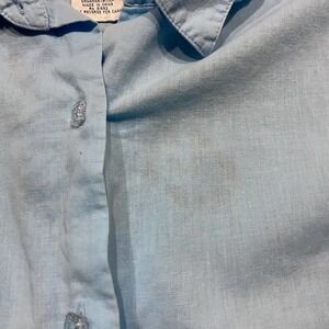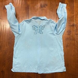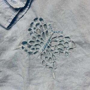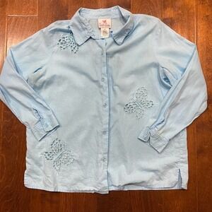 Quacker Factory Vintage Baby Blue Linen Butterfly Button Down Shirt 1X