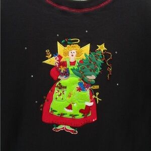 Quacker Factory Vintage Crew Neck Embroidered Sweater - Christmas Tree Holiday