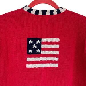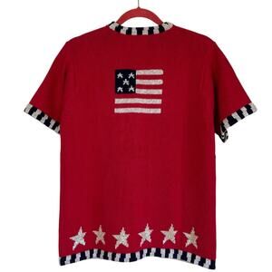 Quacker Factory Vtg USA Flag Short Sleeve Sweater Cardigan Sequins Stars Sz S