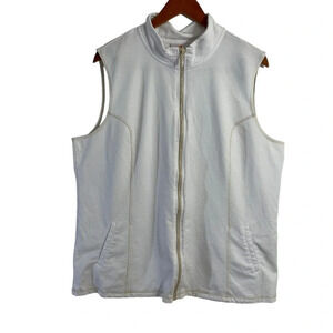 Quacker Factory White Full Zip Up Tank Top XL Mock Neck Rhinestone Embellished