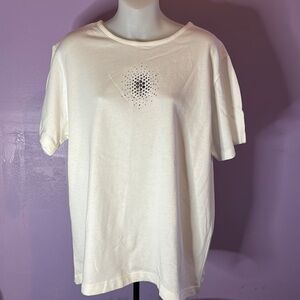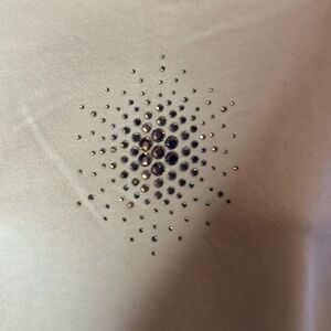 Details: Quacker Factory women's white short sleeve top with clear rhinestones size large