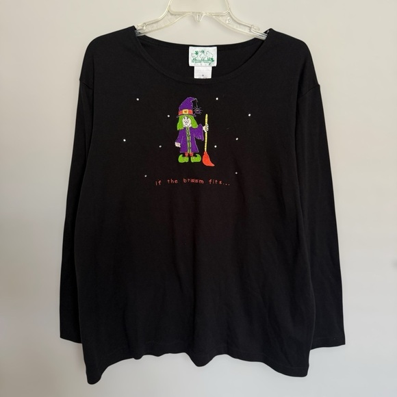 Quacker Factory Witch Embroidered Long Sleeve Shirt Plus Sz 1X Halloween Quirky