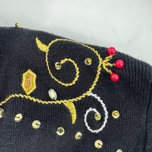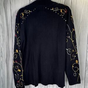 Quacker Factory Women Christmas Holly Berry Black Zip Up Cardigan L Bead Sweater