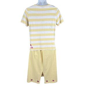 Quacker Factory Women L Yellow 2 Piece Pink Flip Flop Embroidery USA Made Beachy
