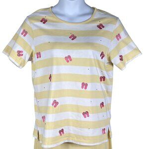 A breezy summer day calls for something cheerful, and this Quacker Factory ensemble delivers. With playful flip-flop embroidery and soft stripes, it feels like an invitation to beachside laughter and sunshine strolls. Crafted from 100% cotton, it's a cozy choice that celebrates carefree moments.