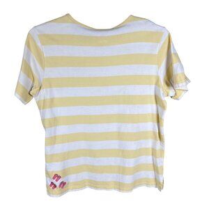 Quacker Factory Womens Size Large Yellow/White Striped 2-Piece Set Maxi Skirt Top Flip-Flop Embroidery Beachy Resort Wear Vacation USA Made 100% Cotton