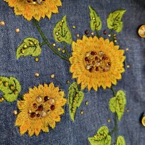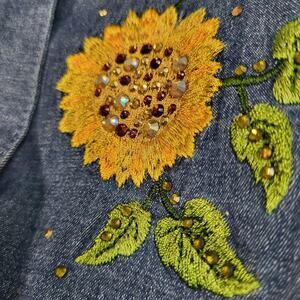 Quacker Factory Denim Shirt M Sunflower Rhinestone Button Front Tunic Cottagecore