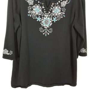 Quacker Factory Women' Plus Snowflake Beaded Pearl Tunic Sweater Sz 1X Black