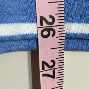 Women’s Quacker Factory long sleeve blue & white striped blouse with snowflake sequin design on chest