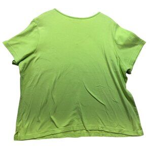 Quacker Factory Womens Beaded V-Neck Tee Top 2X Green Short Sleeve Cotton