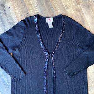 Quacker Factory Women's Black Metallic Ribbed Sequin Open Front Cardigan Sweater 1X