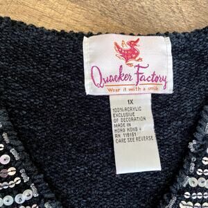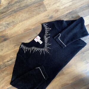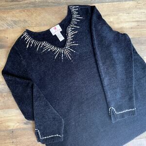Quacker Factory Women's Black Super Soft V Neck Embellished Sweater 1X