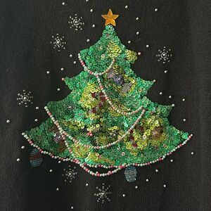 Quacker Factory Women's Black XL Christmas sweater with sequined tree