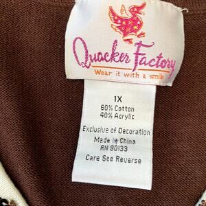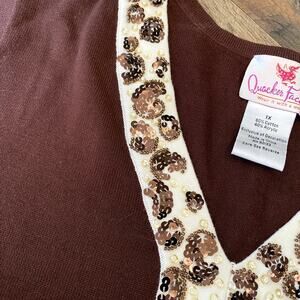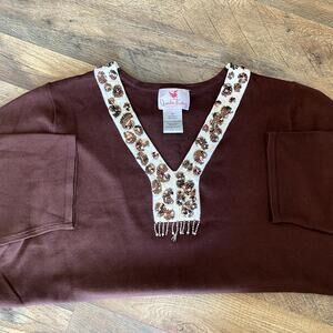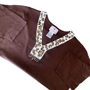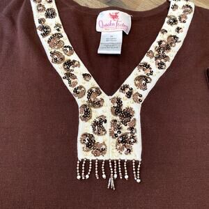 Quacker Factory Women's Brown Boho Embellished Sparkle Top 1X