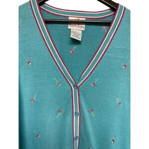 Quacker Factory Women's Cardigan Sweater Silk Blend Floral Preppy Pastel Blue XL