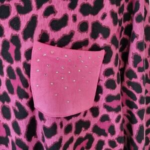 Quacker Factory Womens Cheetah Animal Print Top Sz L Studded Pink Y2k Girly