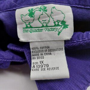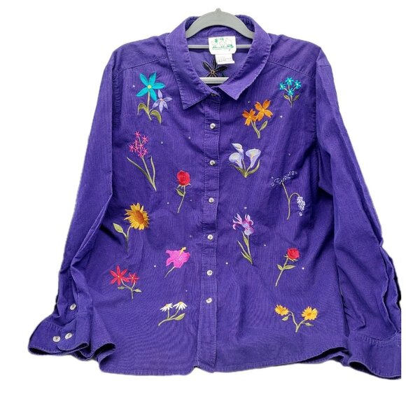 Quacker Factory Womens Corduroy Shirt Size 1X Purple Embroidered Floral