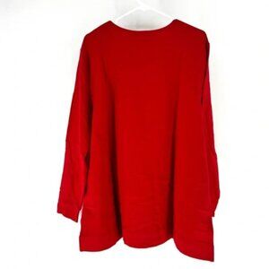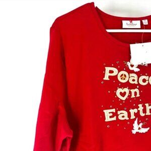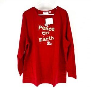 Women's Plus Size Holiday Saying French Terry Long-Sleeve Top from Quacker Factory in Red.
