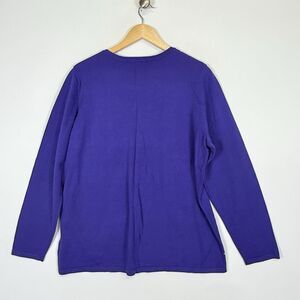 Quacker Factory Womens Large Royal Purple Rhinestone Whimsical Cardigan Sweater