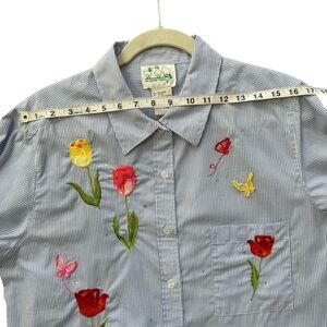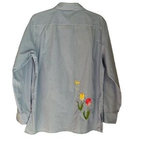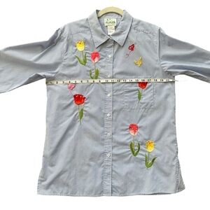 Quacker Factory Women's Long Sleeve Button Down with Tulip Embroidery Size: M