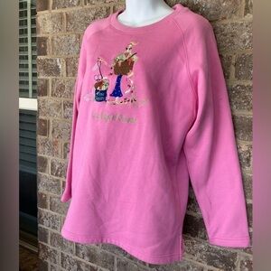 Quacker Factory Womens M Pink Embellished Lazy Summer Picnic Sweatshirt NWT