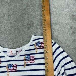 This Quacker Factory top features a classic striped design with sparkling American flag embellishments. The cotton-polyester blend ensures comfort and breathability.