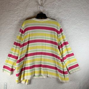 Quacker Factory Women's Multicolor Stripe Cotton Cardigan Sweater Size 2X 8747
