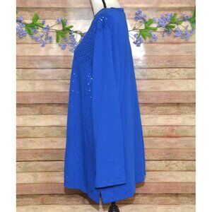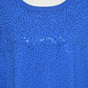Quacker Factory Womens Plus 3X Blue Sequin Tunic Thin Knit Shirt Party Holiday