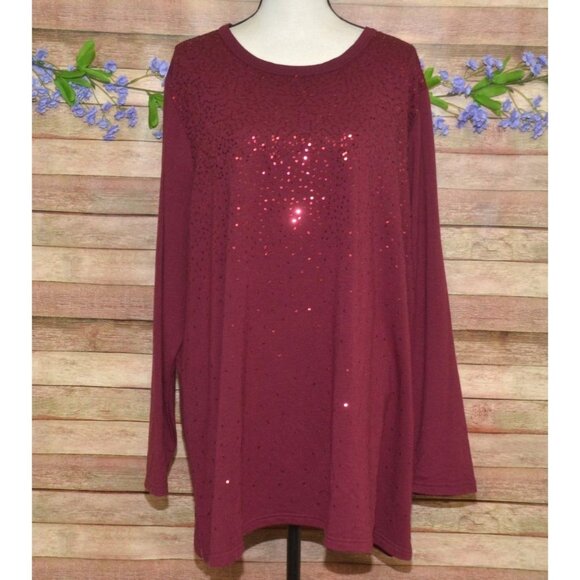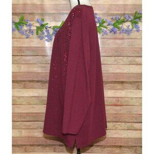 Quacker Factory Womens Plus 3X Maroon Sequin Tunic Thin Knit Shirt Party Holiday