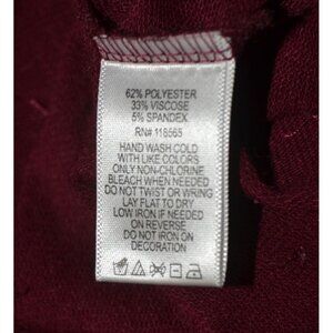 This Quacker Factory burgundy or maroon pullover tunic offers a stylish and casual look with its 3/4 sleeves and sequin detailing. Perfect for plus-size women, the stretchy, thin knit fabric ensures comfort and ease of movement.