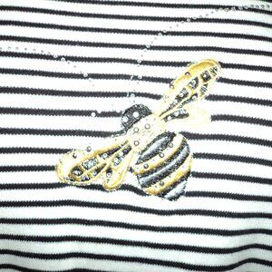 Quacker Factory Women's Plus 3X Top Shirt Striped Black White Embroidered Bee