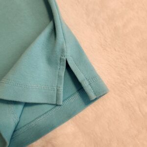 Quacker Factory womens short sleeve crew neck turquoise with embroidered lobsters across the front, size medium. small stain at hem a shown in picture, I did not try to get it out