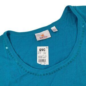 Quacker Factory Womens Turquoise Sleeveless Knit Top Sequin Accents Size 2X