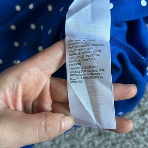 Quacker Factory Womens xl Blue Polka Dot Sleeveless Dress W/ Floral Embroidery