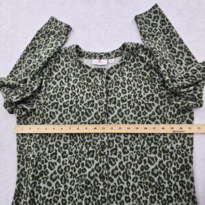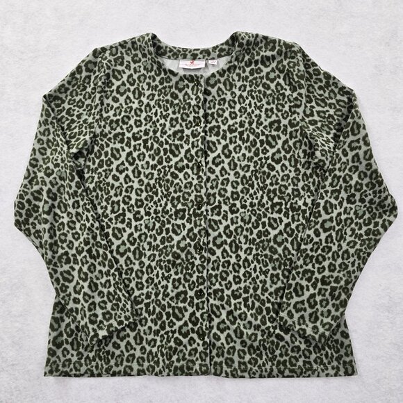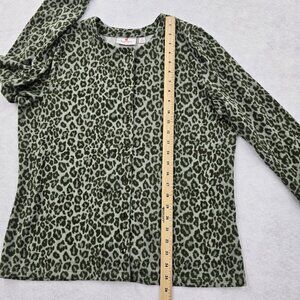 Quacker Factory XL Animal Print Snap Button Cardigan Size M Rhinestone Green
