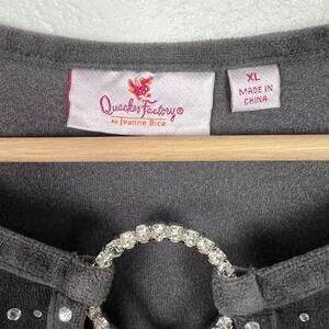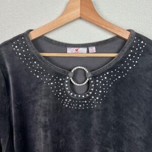 Quacker Factory XL Gray Velour Bling Embellished Keyhole Long Sleeve Tunic